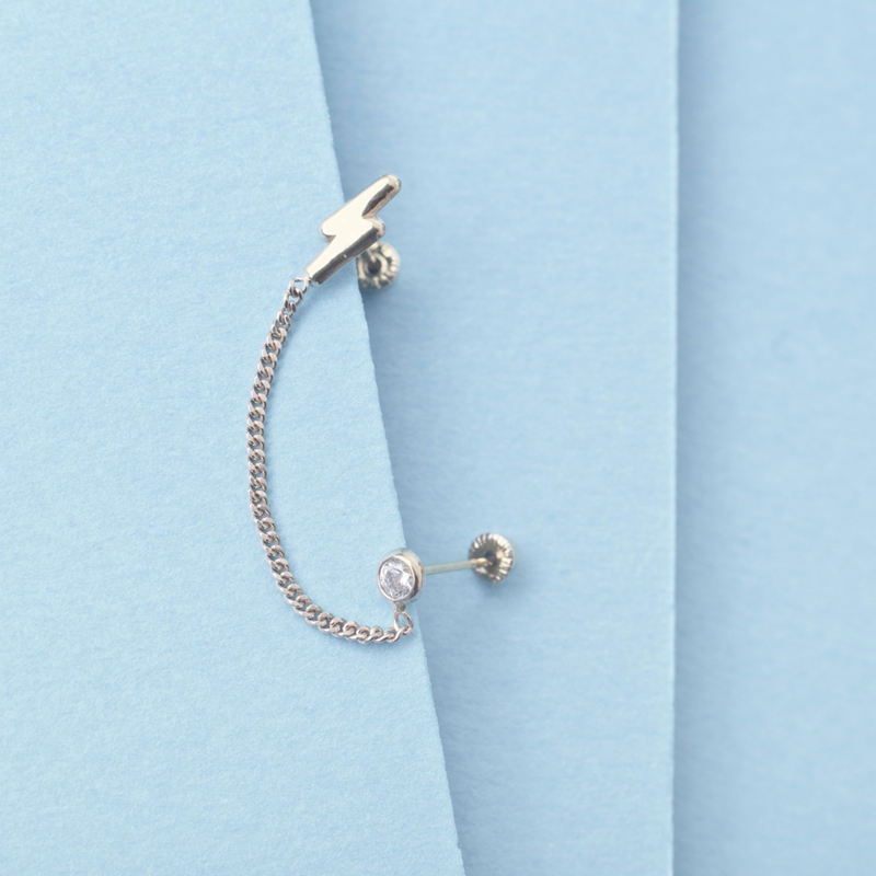 Broquel oro 14k razito, cadena y bisel. Bolita atrás. Precio por par