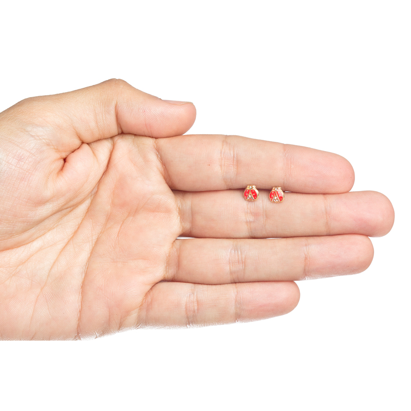 Broquel de oro 14kc con forma de catarina esmaltada y circonias. Bolita atrás.