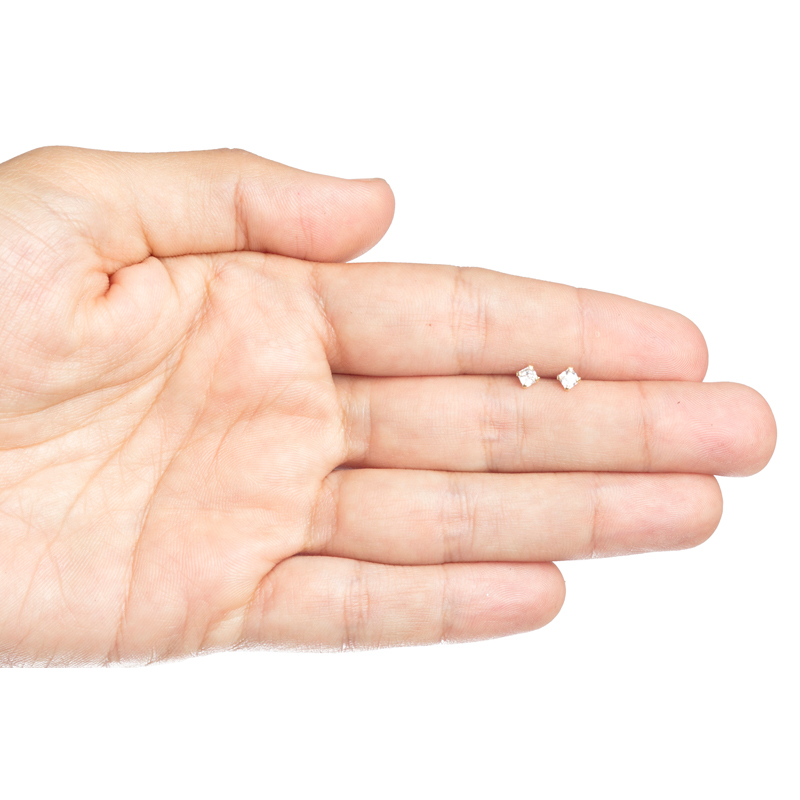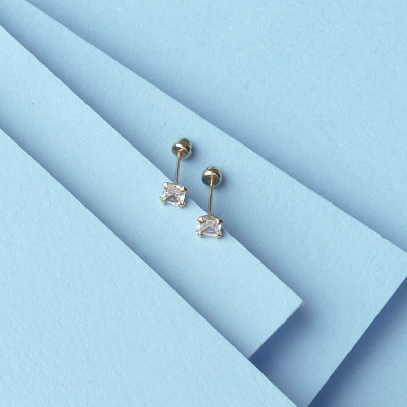 Broquel de oro 14kc circonia cuadrada con uñas. Bolita atrás.
