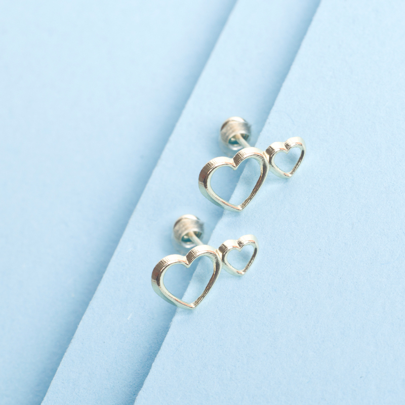 Broquel de oro 14kc 2 corazones calados. Bolita atrás.