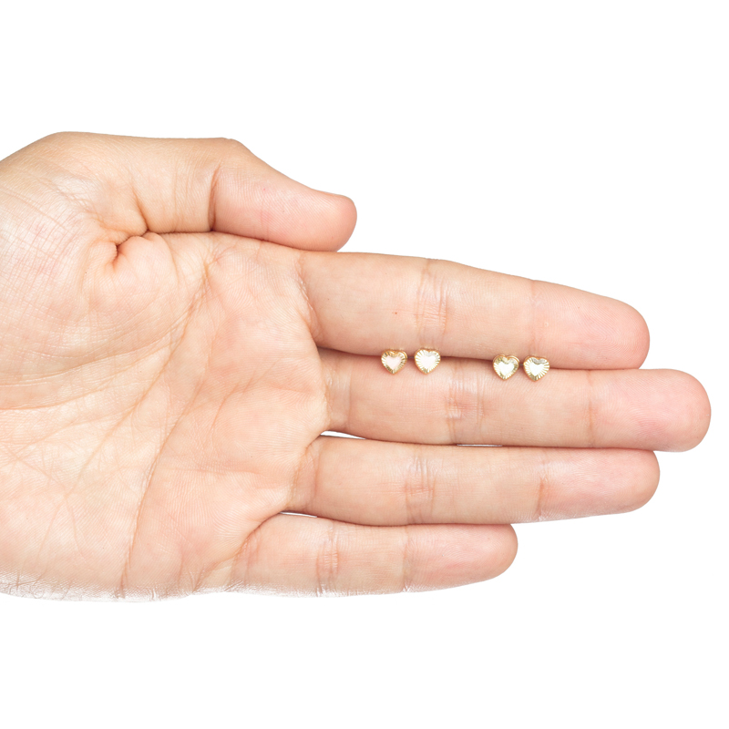 Broquel oro 14kc corazón esmaltado. Bolita atrás.