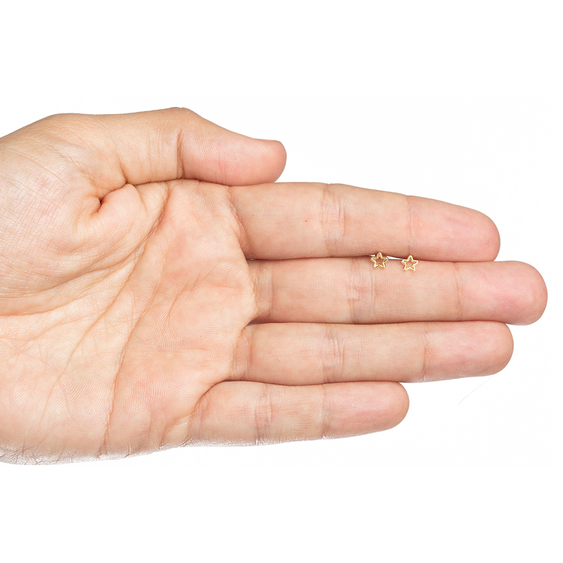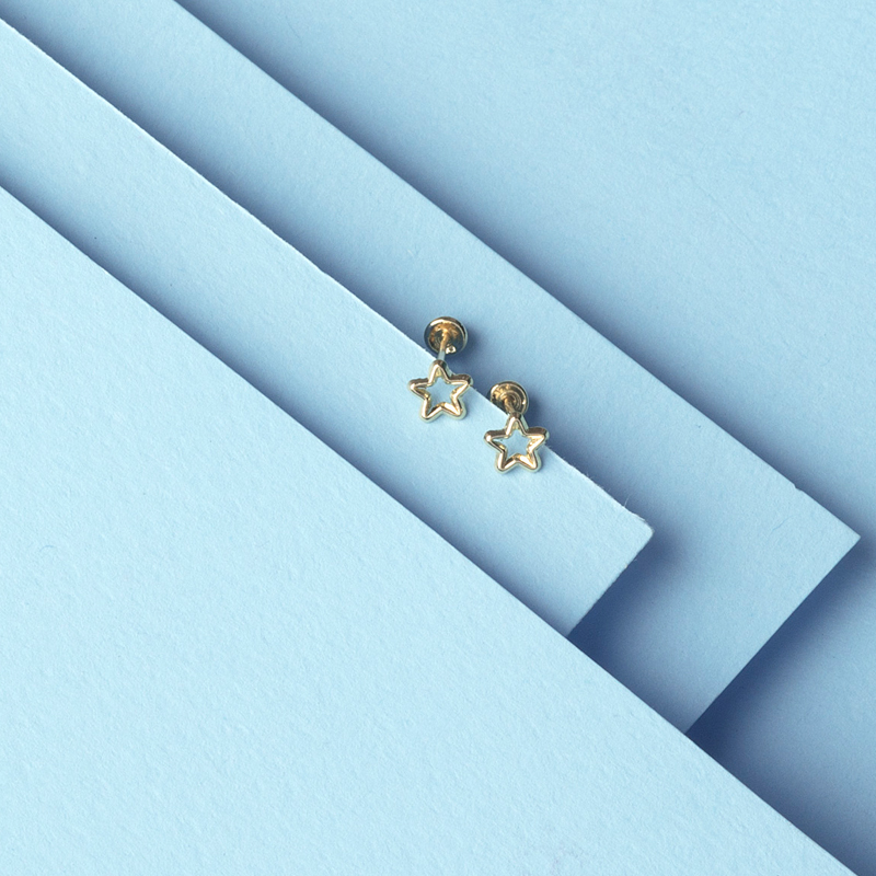 Broquel oro 14kc silueta de estrella mini. Bolita atrás.
