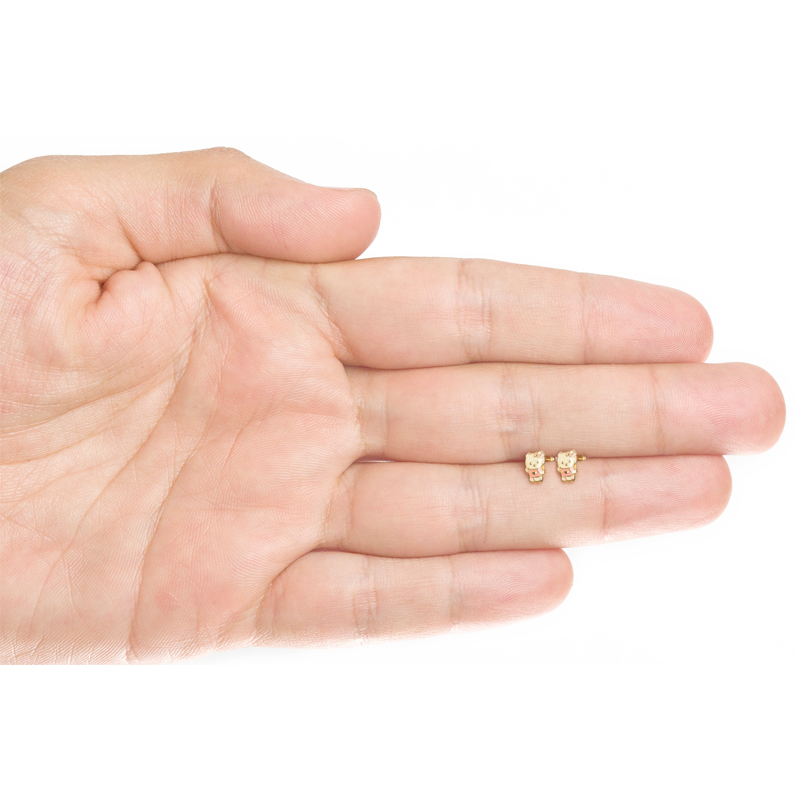 Broquel oro 14kc gatita esmaltada mini. Bolita atrás.
