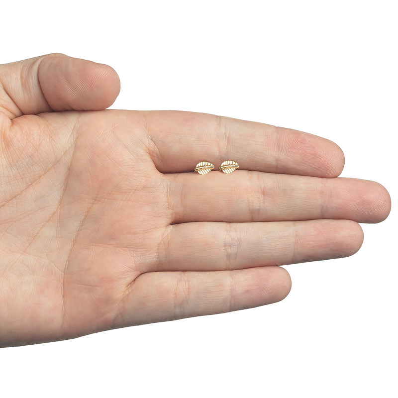 Broquel oro 14kc hojita de árbol. Bolita atrás.
