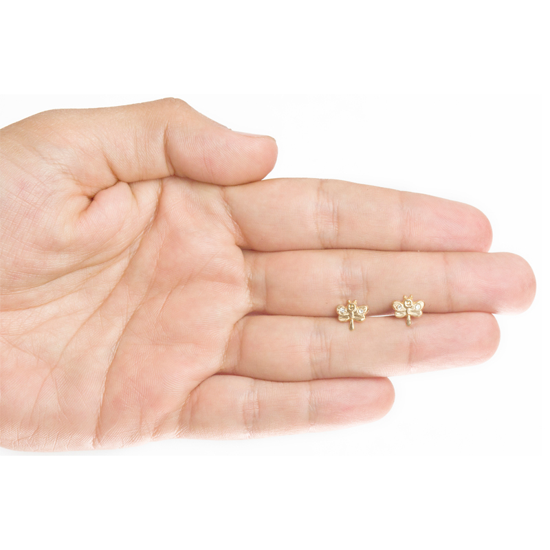 Broquel oro 14kc libélula con circonias. Bolita atrás.